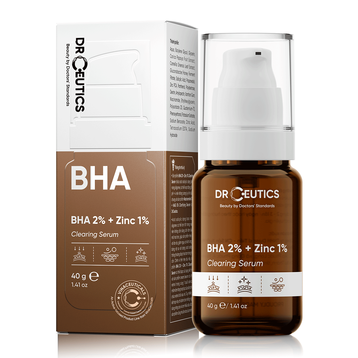 BHA 2% + Zinc 1% Clearing Serum hỗ trợ ngăn ngừa và cải thiện tình trạng mụn theo cơ chế kép: Salicylic acid dạng bao nang oligomer giúp làm thông thoáng lỗ chân lông, góp phần giảm bít tắc và cân bằng dầu nhờn, trong khi đó, Zinc PCA giúp hạn chế sự phát triển của vi khuẩn gây mụn. Công thức bổ sung Niacinamide, Panthenol, chiết xuất trà xanh và dịch lọc mật ong lên men nhằm làm dịu bề mặt, hỗ trợ duy trì độ ẩm và củng cố hàng rào bảo vệ da. Kết cấu lỏng nhẹ, thấm nhanh, dễ phối hợp trong routine hằng ngày. Phù hợp mọi loại da, đặc biệt da dầu hoặc dễ bít tắc.