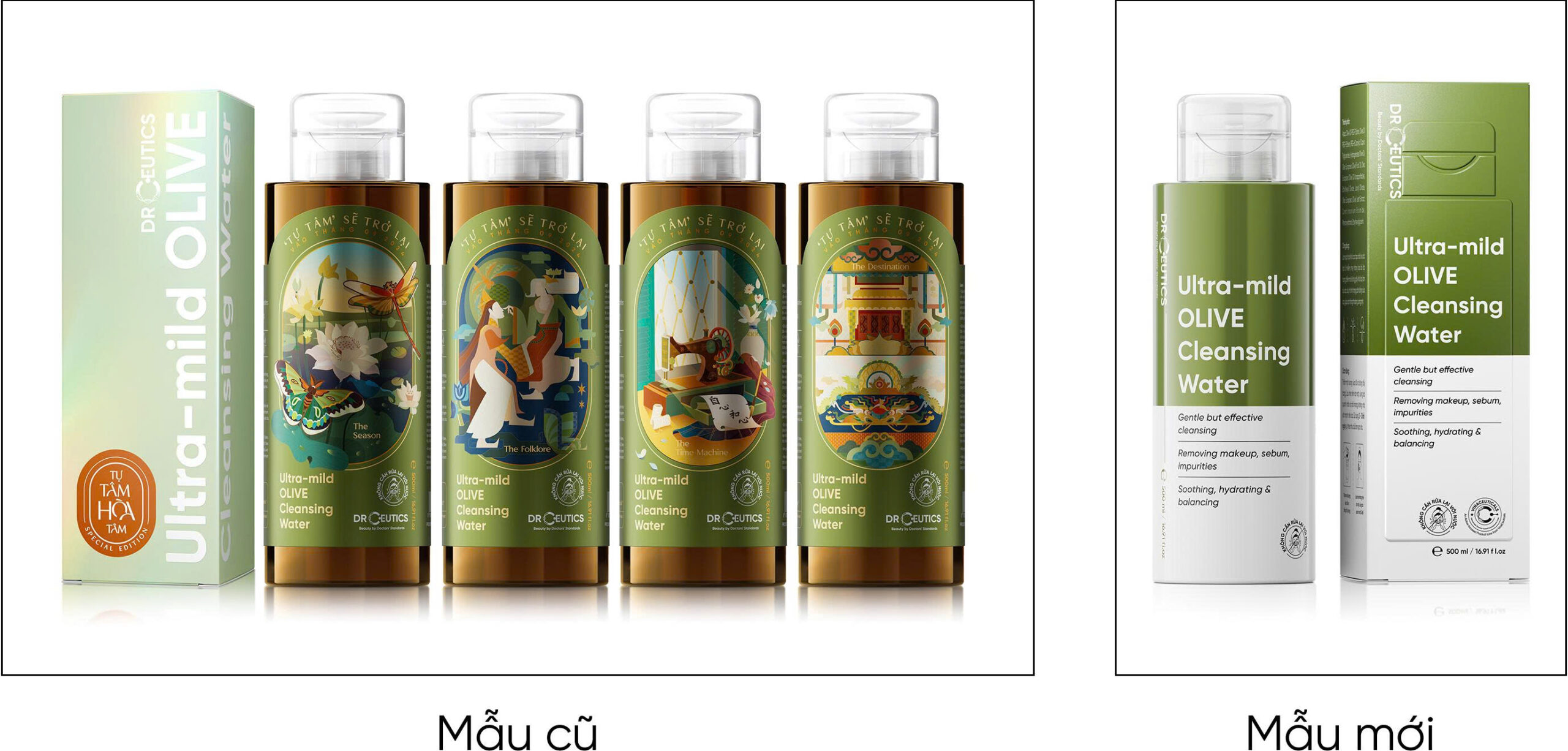 Qua đây, công ty chúng tôi xin thông báo về việc thay đổi mẫu bao bì Nước tẩy trang (Ultra-Mild OLIVE Cleansing Water) 500ml số PCB: 80/24/CBMP-Hgi – Barcode: 8936205621462